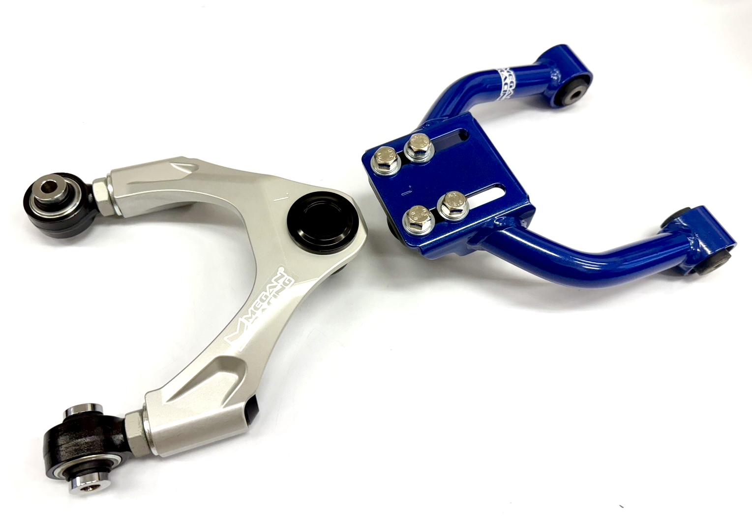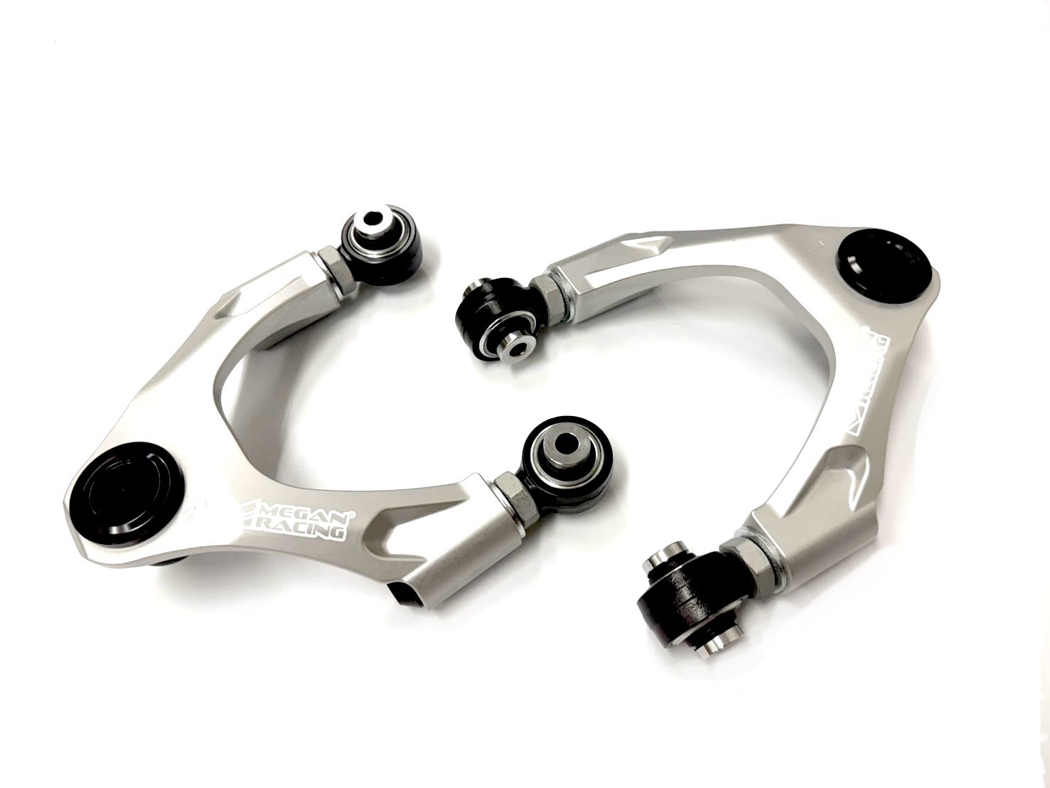 Megan Racing Inc.は、アグレッシブでパフォーマンス志向のチューナーのニーズに応えるため、強化・調整可能なコントロールアームを開発しました。過酷なレースのストレスにも耐えうる軽量合金鋼で作られたこれらのアームは、耐久性と耐候性を確保するために3段階のパウダーコーティングが施されています。