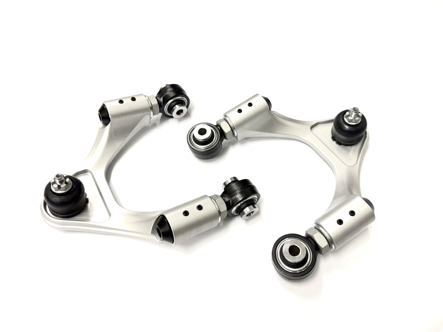 これらのフロントアッパーコントロールアームは調整式で、車両のフロントハンドリングを微調整できます。車高を下げる際に、前輪が内側のトレッドのみに接地することで発生するタイヤの早期摩耗を防ぎ、スポーティなドライビングやレースでのコーナリング性能とハンドリング性能を最適に調整できます。